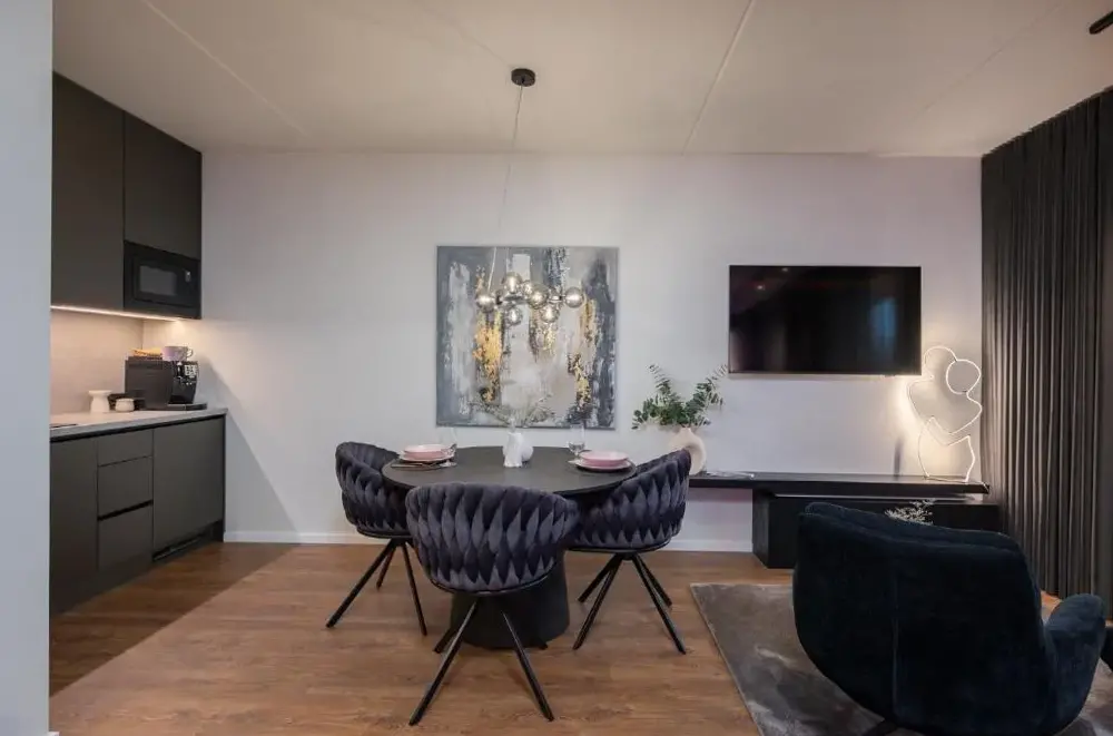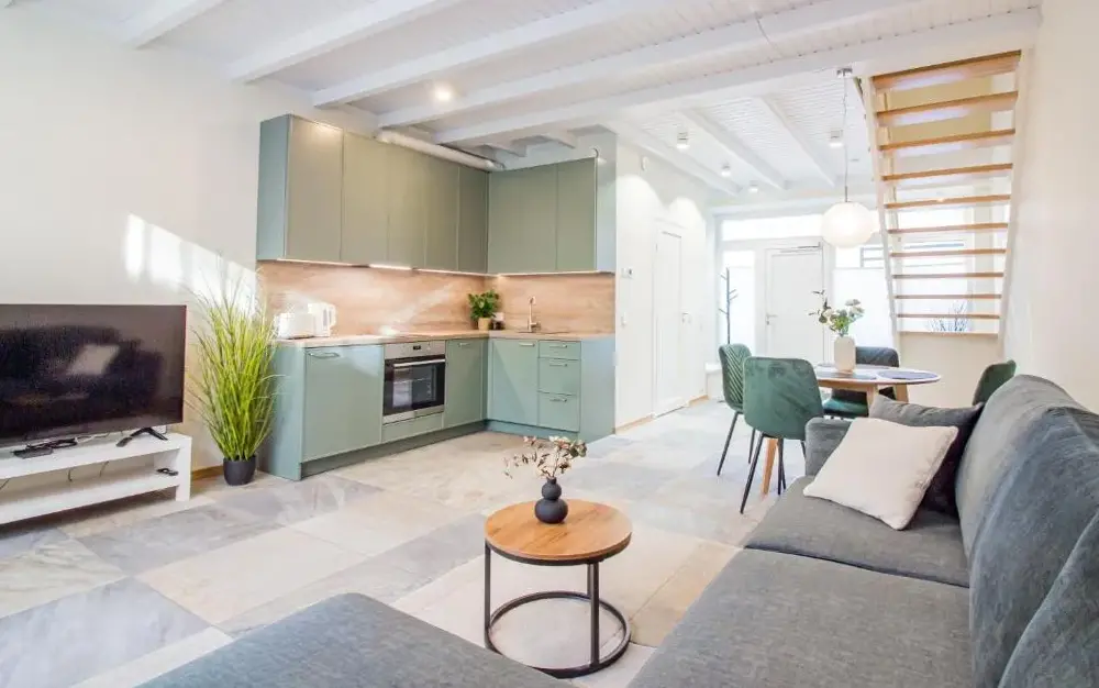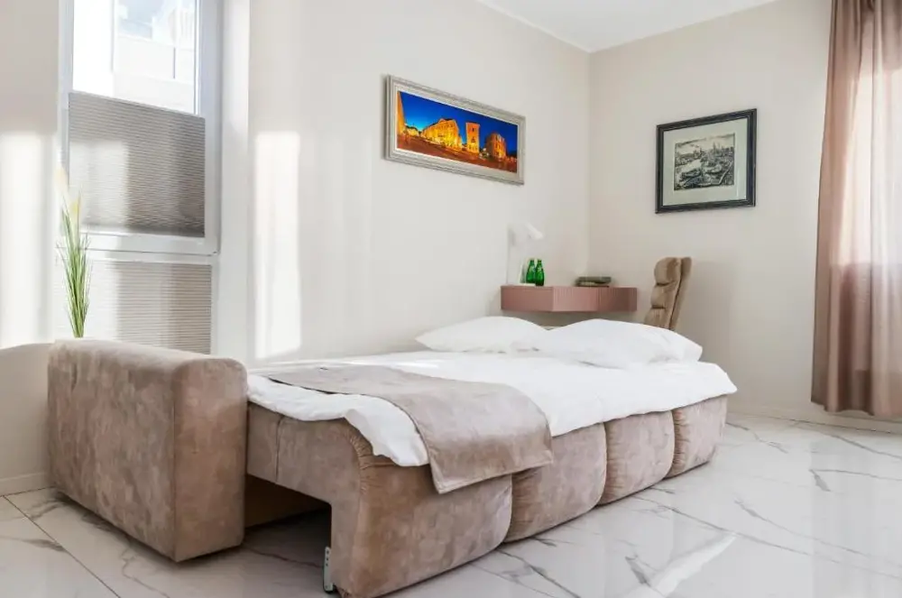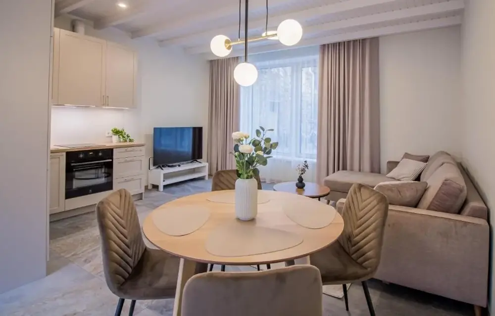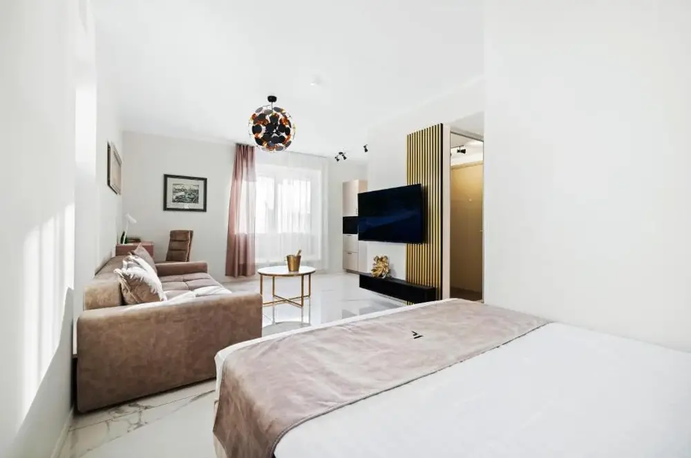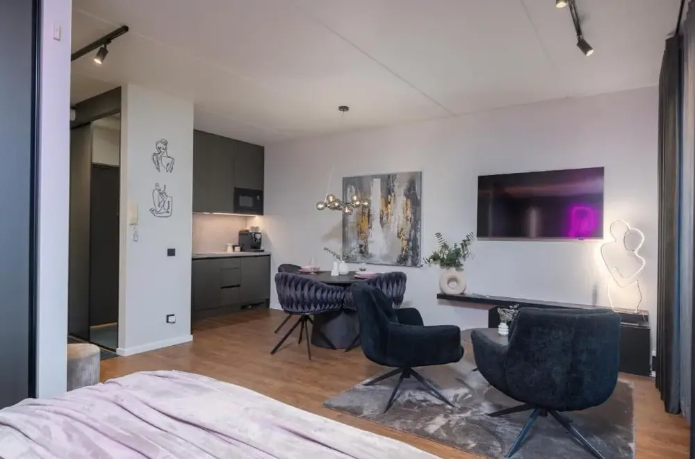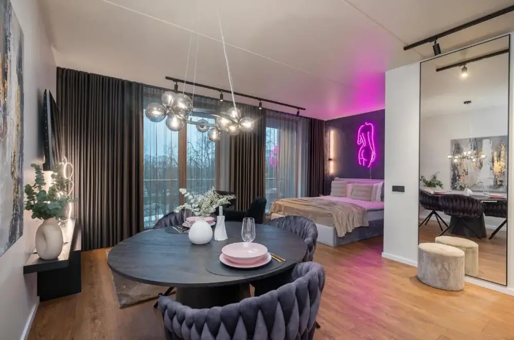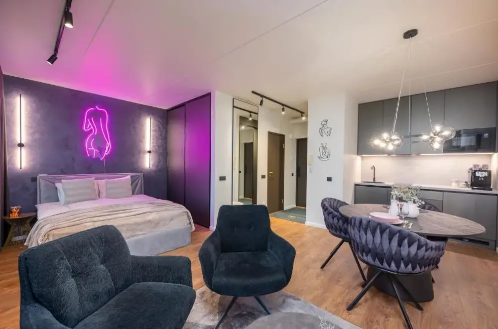 More information about Lai Residence Apartment 2Riia 20 Apartment 5 offers a compact yet functional loft-style layout ideal for travelers seeking efficiency without sacrificing comfort. Guests appreciate its clever design, which maximizes space while maintaining a cozy atmosphere—the high ceilings and distinctive wall art create an inviting ambiance perfect for short stays.